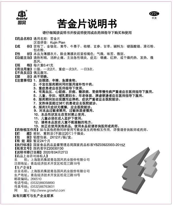 36片苦金片说明书