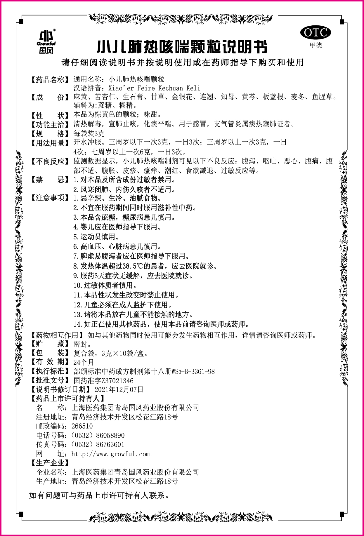 12袋小儿肺热咳喘颗粒说明书